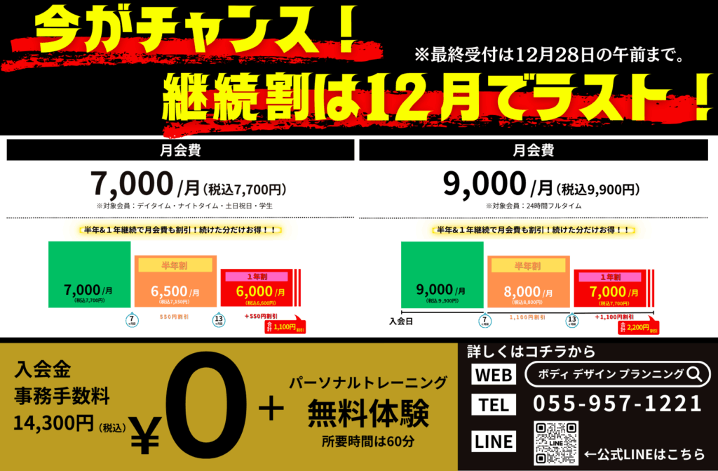 私自身もボディデザインプランニングに入会して週2~3回ベンチプレスなどを行い重さも少しずつ限界を突破しています。今後、会員様へのオプションとしての【メディカルサポート】としてクリニックでの血液検査・生理検査・レントゲン検査を提供し栄養指導もさせて頂きます。